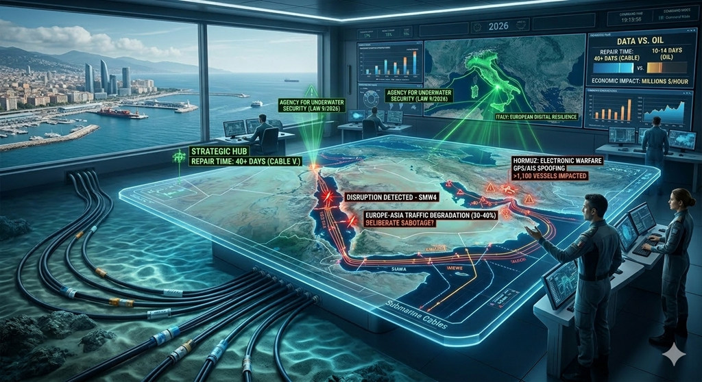 In this context, Italy occupies a key strategic position. With the entry into force of Law No. 9 of January 26, 2026, the country established the Agency for the Safety of Underwater Activities, assuming a leading role in the Mediterranean for the monitoring and restoration of critical infrastructure. Italy’s goal is to transform its geographical centrality into a competitive advantage, becoming the natural hub for the landing of cables connecting the Indo-Pacific to Europe.